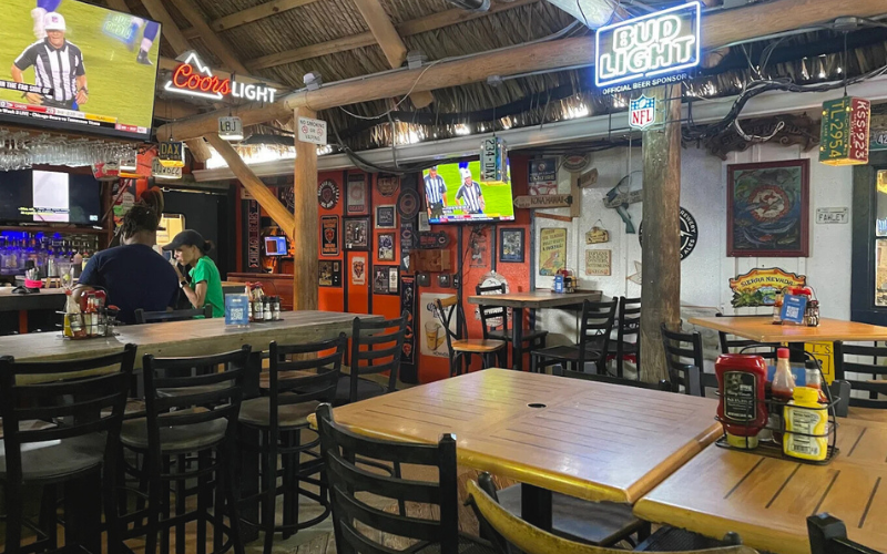If you’re looking for a high-energy spot with tons of entertainment, head over to MVP (My Village Pub), right in Siesta Key Village. Expect a packed house, a rowdy crowd, and over 40 big screens for watching every touchdown and halftime moment. With drink specials and party vibes, this is the place to be if you’re looking for a lively experience!